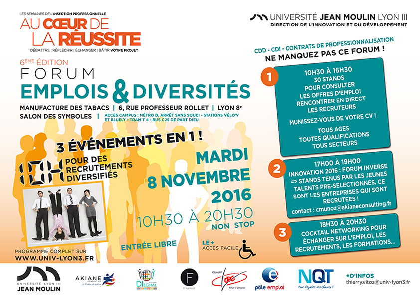 Vous êtes à la recherche d'un CDD, CDI ou d'un contrat de professionnalisation ? Participez à la 6e édition du Forum Emplois & Diversités organisée par l’Université Jean Moulin.