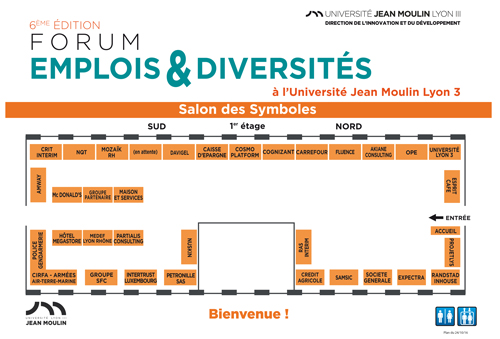 Akiane consulting, Amway, Caisse d’Epargne, Carrefour, Cognizant, Cosmo platform, Crédit Agricole, Davigel, Esprit café, Expectra, Family +, Fluence, Groupe CRIT, Groupe partenaire, Groupe SFC, H?tel Megastore, Intertrust Luxembourg, Maison & Services, Mc Donald’s Lyon restaurants, Medef Lyon Rh?ne, Moza?k RH, Nos Quartiers ont des Talents (NQT),, Nuskin, Objectif pour l’Emploi, Partialis consulting, Petronille sas, P?le Défense Nationale, Projetlys, Randstad Inhouse services, RAS interim, Samsic, Société GénéraleSous réserve de modification