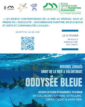 Dans le cadre de l’Année de la Mer 2025, deux bénévoles ont été envoyées au Sénégal afin de développer un partenariat avec l’Aire Marine Protégée de la Somone, sous tutelle du Ministère de la Transition ?cologique du Sénégal. Cette mission leur a permis d’appréhender concrètement les enjeux liés à la protection des écosystèmes marins et à la gestion des déchets. La conférence s’inscrit ainsi dans une réflexion plus large intitulée ? Les enjeux contemporains de la mer au Sénégal sous le prisme de l’associatif : gouvernance maritime, enjeux bleus et verts et communautés locales ?, en articulant expériences de terrain et analyse juridique des dynamiques environnementales et maritimes.