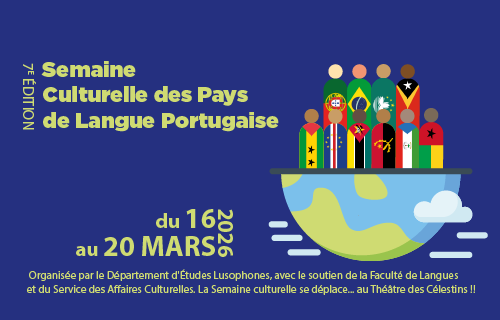 Venez participer à la 7e édition de la Semaine Culturelle des Pays de Langue Portugaise se déroulera du 16 au 20 mars prochain ! Cette semaine est organisée par le Département d’?tudes Lusophones avec le soutien du Service des Affaires Culturelles, de la Faculté des Langues, du Service ?dition et du Centre de Compétences en Langues-CCL.