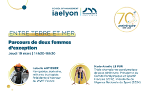 - Entre terre et mer | Regard croisé entre deux femmes d’exception19 mars 2026L’iaelyon à l’honneur de réunir pour la 1ère fois Isabelle Autissier, première femme à avoir accompli un tour du monde en solitaire en compétition, et Marie-Amélie Le Fur, para-athlète et multiple championne paralympique, détentrice de neuf médailles.